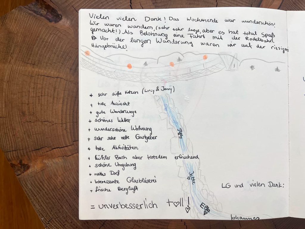 Sie waren bereits bei uns zu Gast? Dann würden wir uns über einen Eintrag und Feedback von Ihnen freuen – schicken Sie uns einfach Ihren Text zur Veröffentlichung per mail. Herzlichen Dank!